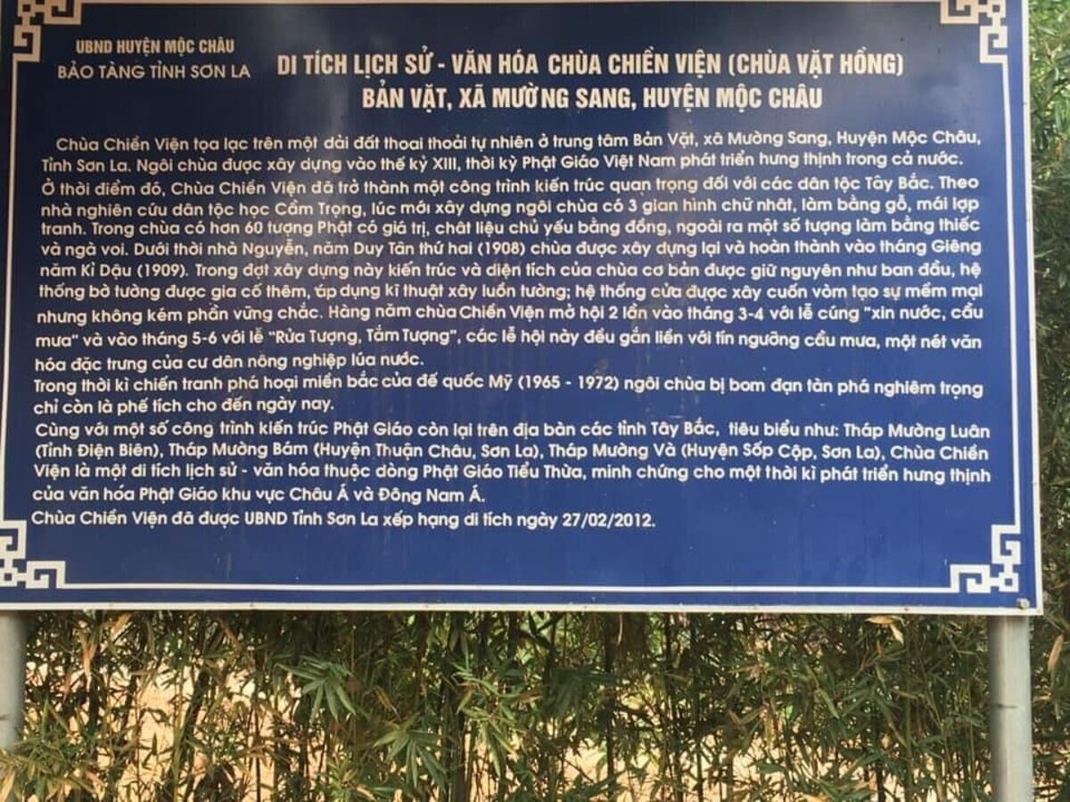 Chùa Vặt Hồng là một trong những di tích lịch sử, văn hóa nổi bật tại Mộc Châu, Sơn La. Chùa không chỉ là nơi sinh hoạt tôn giáo mà còn là điểm tham quan tâm linh hấp dẫn đối với du khách khi đến thăm vùng đất này. Với vẻ đẹp cổ kính và không gian yên bình, Chùa Vặt Hồng thu hút du khách không chỉ vì giá trị lịch sử, mà còn bởi sự thanh tịnh và phong cảnh thiên nhiên xung quanh.