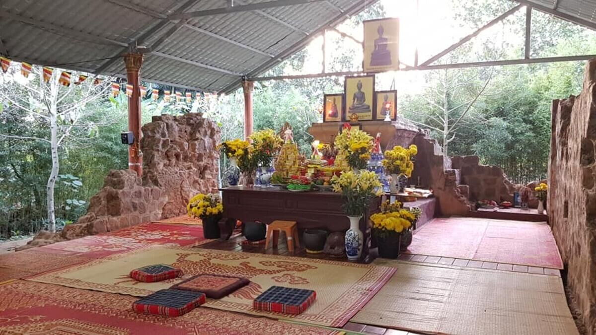 Trong khuôn viên chùa, các pho tượng Phật được bài trí trang nghiêm, mang đậm ảnh hưởng của nghệ thuật Phật giáo.