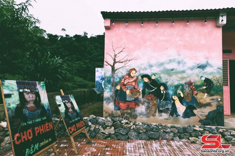 Cùng với đó, nhóm nghệ sĩ đã biến những bức tường bê tông khô cứng thành những bức tranh đa sắc màu tái hiện cuộc sống, nét văn hoá của đồng bào Mông, Dao trong bản. Vừa tạo nên những hình ảnh sinh động hài hòa với thiên nhiên, không làm phá vỡ cảnh quan mà tạo thêm cho bản những điểm nhấn ấn tượng.